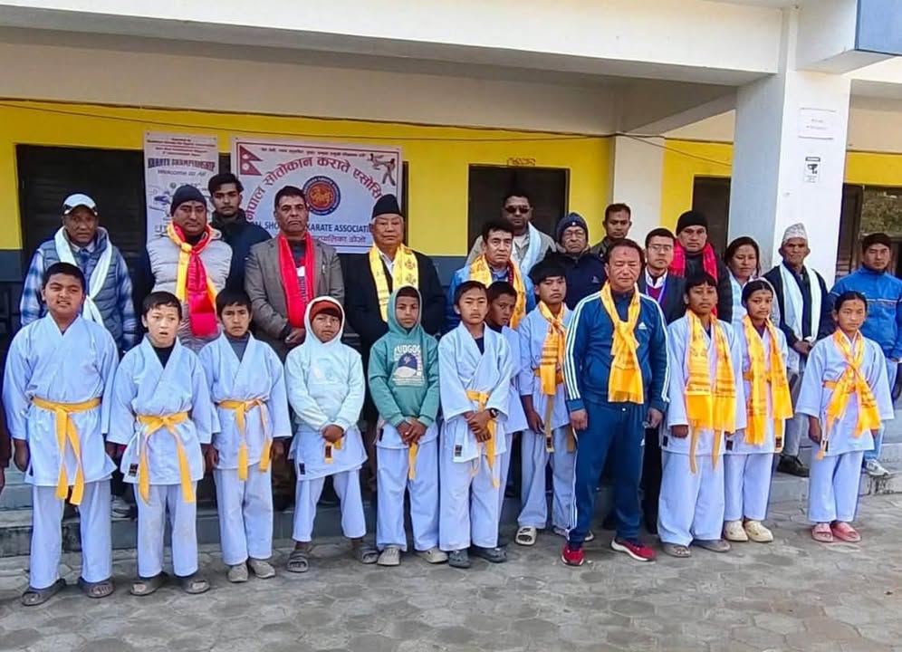 दाप्चा / भारतको देहरादुनमा हुने कराँते प्रतियोगितामा सहभागी हुने नेपाली टोलीलाई नमोबुद्ध नगरपालिकाले बिदाई गरेको छ । सोतोकान कराँते–डो स्पोर्टस् एसोसिएसनको आयोजनामा डिसेम्वर २७ र २८ तारिख देहरादूनमा हुने नवौं अन्तराष्ट्रिय खुला कराँते च्याम्पियनसिपमा सहभागी हुने ५ खेलाडी, प्रशिक्षक र अफिसियल टोलीलाई शनिवार विदाई गरिएको हो । नेपाल सोतोकान कराँते संघको नमोबुद्ध डोजोले आयोजना गरेको कार्यक्रममा नमोबुद्ध नगर प्रमुख कुनसाङ लामा, नेपाल सोतोकान कराँते संघका संस्थापक अध्यक्ष एवं प्रमुख प्रशिक्षक हेमकुमार श्रेष्ठ, प्राविधिक निर्देशक, वरिष्ठ प्रशिक्षक समेत रहेका राष्ट्रिय रेफ्री धनेन्द्रकुमार श्रेष्ठ, टीम प्रशिक्षक सुरेश श्रेष्ठ, नमोबुद्ध नगरपालिकाको युवा परिषद्का कार्यकारी उपाध्यक्ष रामेश्वर अधिकारी, समाजसेवी मनोज अधिकारी, हरिप्रसाद अधिकारी, हरिशचन्द्र अधिकारी, दाप्चा माध्यमिक विद्यालयका प्रधानाध्यापक लोकेन्द्रसिं घटाल लगायतलले उनीहरुलाई विदाई गरेका हुन् ।