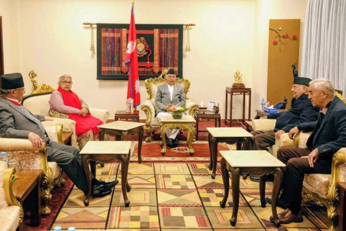 मङ्गलबार नै राष्ट्रपति कार्यालय शीतल निवासमा राष्ट्रपति रामचन्द्र पौडेलको उपस्थितमा प्रधानमन्त्री सुशीला कार्की तथा नेपाली कांग्रेसका सभापति एवं पूर्वप्रधानमन्त्री शेरबहादुर देउवा, नेकपा एमालेका अध्यक्ष एवं पूर्वप्रधानमन्त्री केपी शर्मा ओली र नेपाली कम्युनिष्ट पार्टीका संयोजक एवं पूर्वप्रधानमन्त्री पुष्पकमल दाहाल ‘प्रचण्ड’ सहितको बैठक भएको थियो । उक्त बैठकले फागुन २१ गते हुने निर्वाचन सम्पन्न गर्नका लागि वातावरण बनाउने समझदारी भएको राष्ट्रपति कार्यालयले जनाएको छ ।