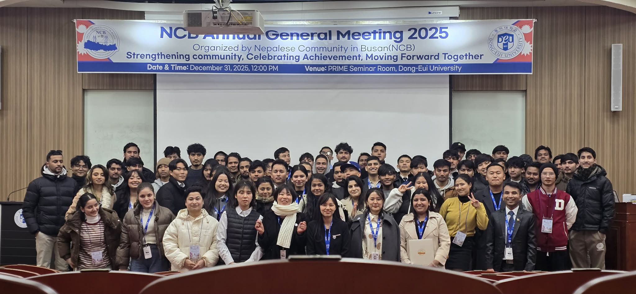 दक्षिण कोरियाको बुसानमा क्रियाशील नेपाली समुदायको सबैभन्दा ठूलो र एकमात्र संस्था नेपलिज कम्युनिटी इन बुसान (NCB) ले आफ्नो वार्षिक साधारण सभा (AGM) २०२५ डोङ इउई विश्वविद्यालयमा भव्य रूपमा सम्पन्न गरेको छ। यो कार्यक्रम एनसीबीको इतिहासमै पहिलो पटक आयोजित वार्षिक साधारण सभा भएकोले ऐतिहासिक उपलब्धिका रूपमा लिइएको छ।