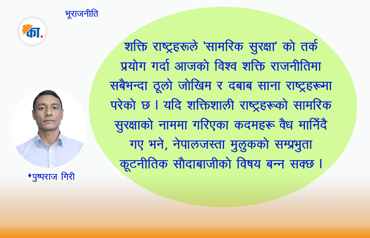 सामरिक सुरक्षाको नाममा शक्ति राजनीति र नेपालको भूराजनीतिक चुनौती