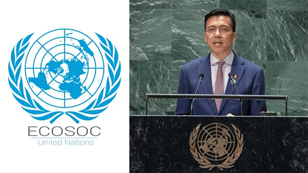 राष्ट्रसङ्घीय आर्थिक तथा सामाजिक परिषद् उपाध्यक्षमा नेपाल निर्वाचित साउन ११, २०८१Leave a Comment on राष्ट्रसङ्घीय आर्थिक तथा सामाजिक परिषद् उपाध्यक्षमा नेपाल निर्वाचित