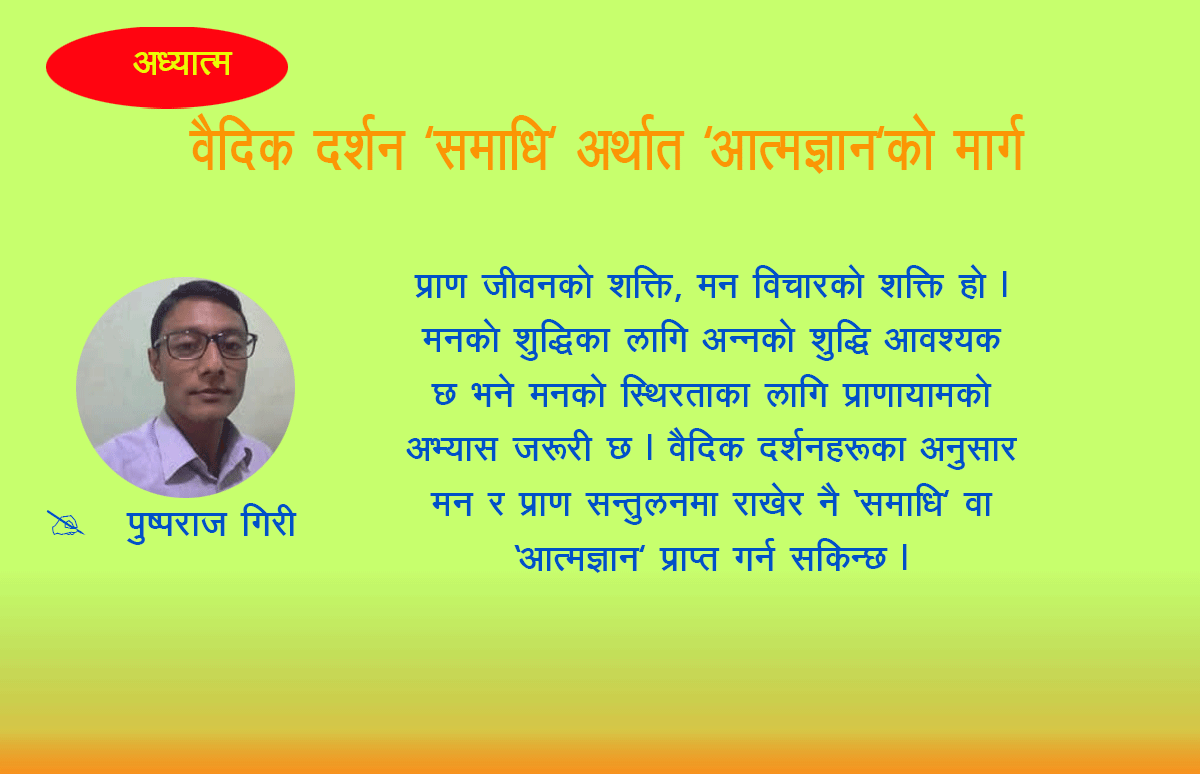 वैदिक दर्शन ‘समाधि’ अर्थात ‘आत्मज्ञान’को मार्ग २०८२ पुष २०, आईतवार १६:५७२०८२ पुष २०, आईतवार १७:०७Leave a Comment on वैदिक दर्शन ‘समाधि’ अर्थात ‘आत्मज्ञान’को मार्ग