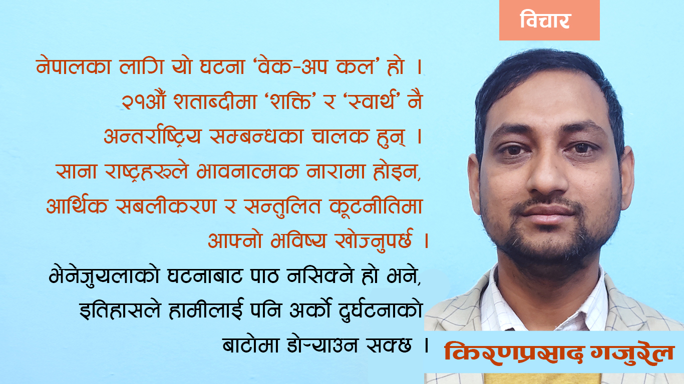 अमेरिकी ‘सर्जिकल स्ट्राइक’ र नेपालजस्ता साना राज्यहरुको कूटनीतिक सकस २०८२ पुष २२, मंगलवार १३:२३Leave a Comment on अमेरिकी ‘सर्जिकल स्ट्राइक’ र नेपालजस्ता साना राज्यहरुको कूटनीतिक सकस