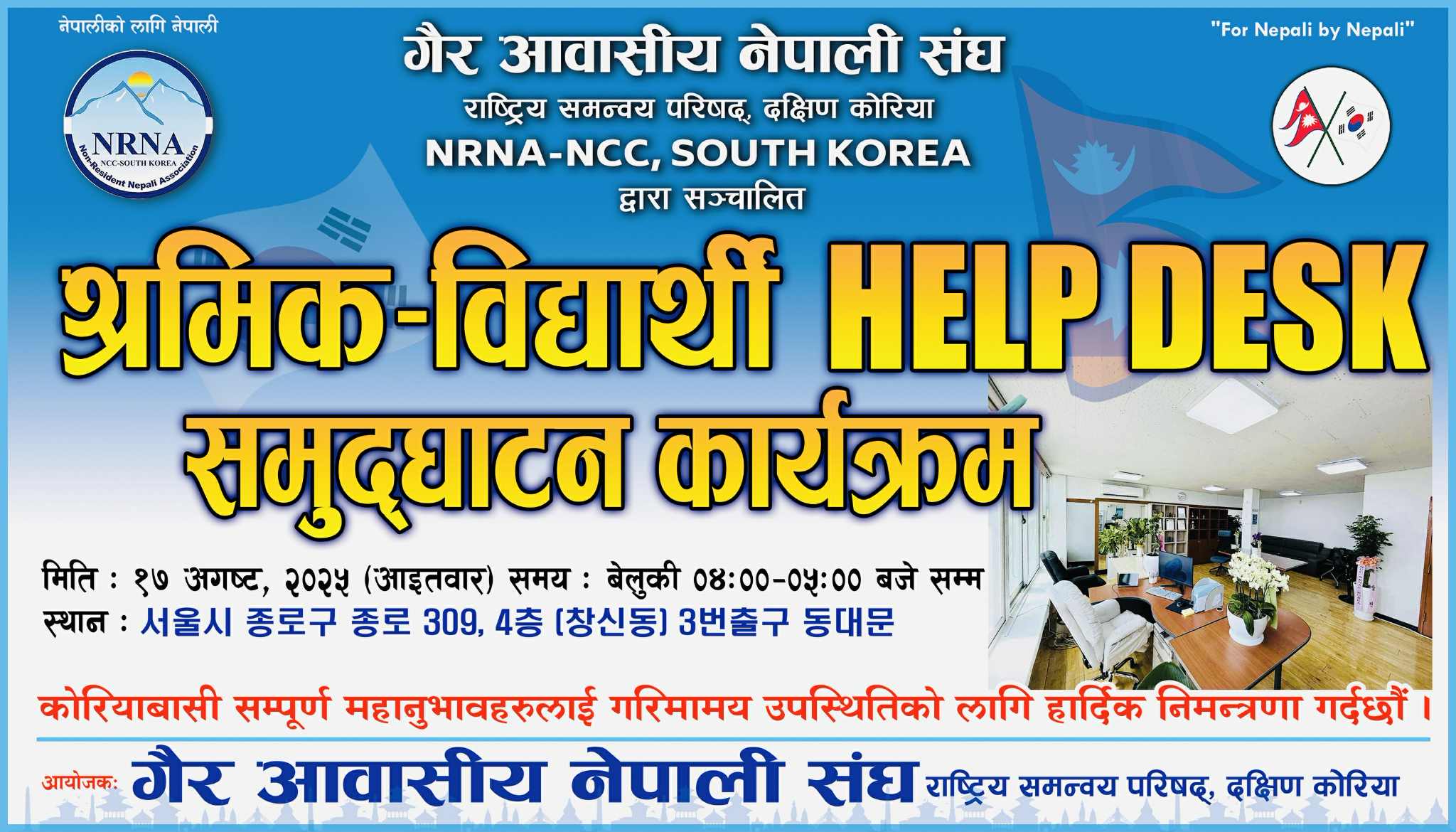 एनआरएनए दक्षिण कोरियाद्वारा ऐतिहासिक पहल: श्रमिक–विद्यार्थी हेल्प डेस्क सञ्चालनमा