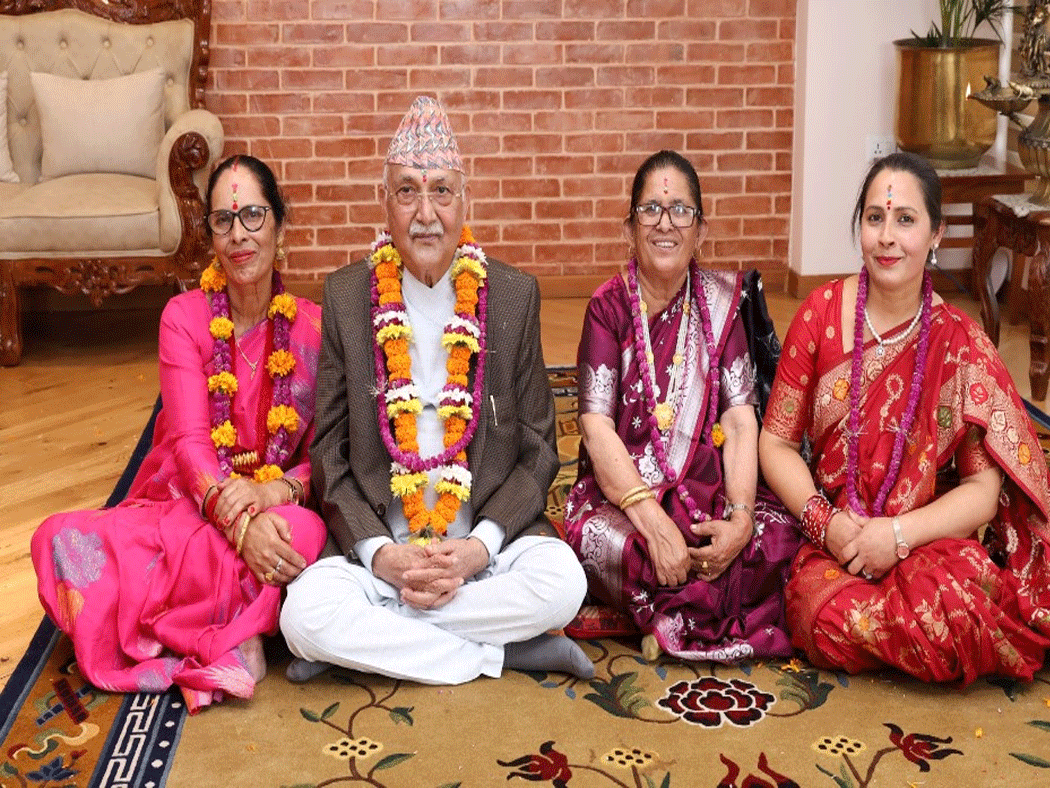 प्रधानमन्त्री ओलीद्वारा बहिनीहरुबाट शुभसाइतमा टीका ग्रहण कार्तिक १९, २०८१Leave a Comment on प्रधानमन्त्री ओलीद्वारा बहिनीहरुबाट शुभसाइतमा टीका ग्रहण