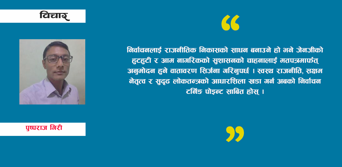 निर्वाचनमा उम्मेदवार चयनको अपरिहार्य सुधारका पक्ष मंसिर २२, २०८२२०८२ मंसिर २२, सोमबार १४:४४Leave a Comment on निर्वाचनमा उम्मेदवार चयनको अपरिहार्य सुधारका पक्ष