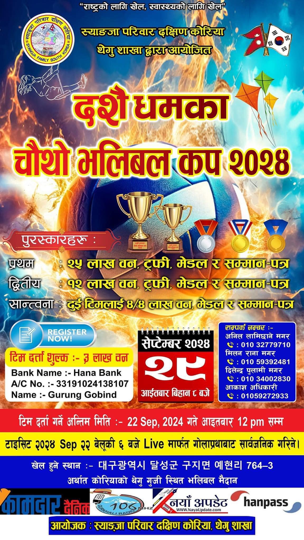 तमू धी दक्षिण कोरियाको ११औं महाधिवेशन अगस्ट २४ मा, नयाँ नेतृत्व चयन हुने साउन २९, २०८२Leave a Comment on तमू धी दक्षिण कोरियाको ११औं महाधिवेशन अगस्ट २४ मा, नयाँ नेतृत्व चयन हुने